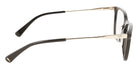 To determine the right size of the frame which ideally fits you, look at the pair of glasses you currently own. The numbers that are typically noted on the inside of the temple are the frame's measurements: lens width, bridge width, and temple length.
