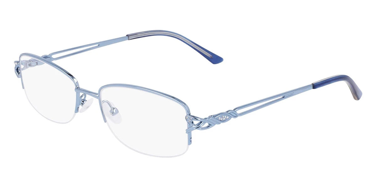 Light Blue (456) Eyeglasses (TRES JOLIE 198 456 58) by Marchon NYC™. Size: 58-17-145, Shape: Rectangle, Material: Metal.