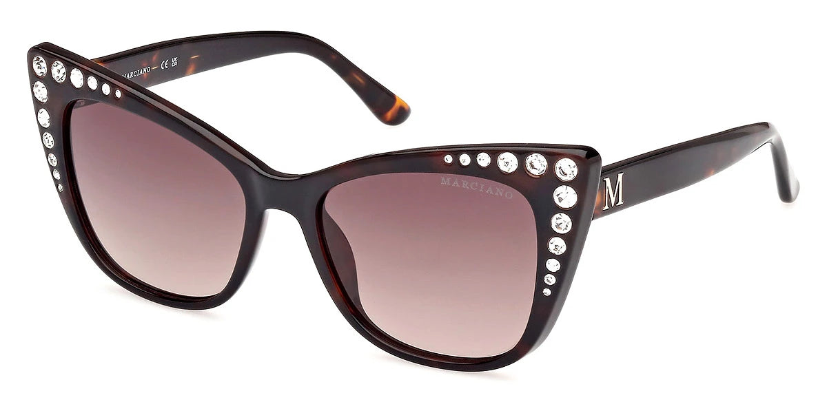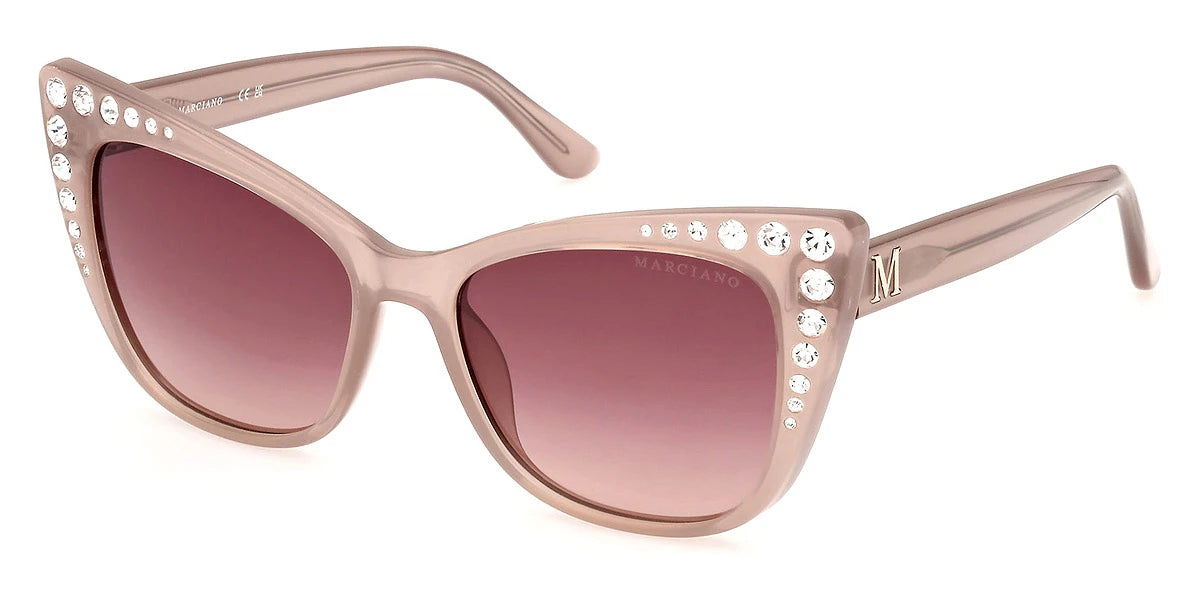 Marciano started to produce collections of sunglasses and optical frames in cooperation with Marcolin Group in 2013. Luxury eyewear for women is designed using the best technologies from the company's experience, and its opulent glasses catch many looks thanks to vivid patterns, stylish prints, and notable decorations, including metal inserts, elements from luminescent plastic, and bold shapes. Every model is introduced in a range of various colors to fit the owner's taste and outfit perfectly. Marciano provides classic glasses as well as beautiful cat-eye frames and other models to fit any face shape and become a lovely accessory for everyday wearing.