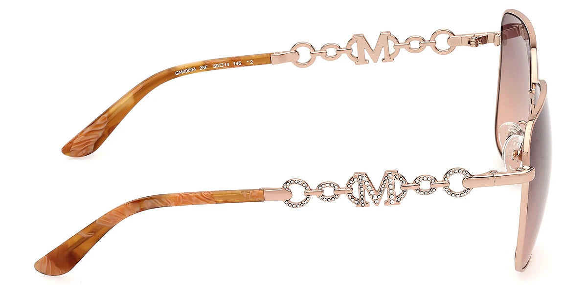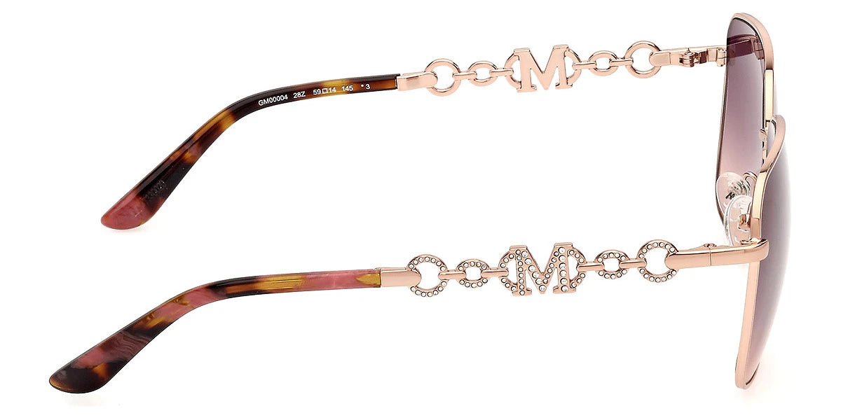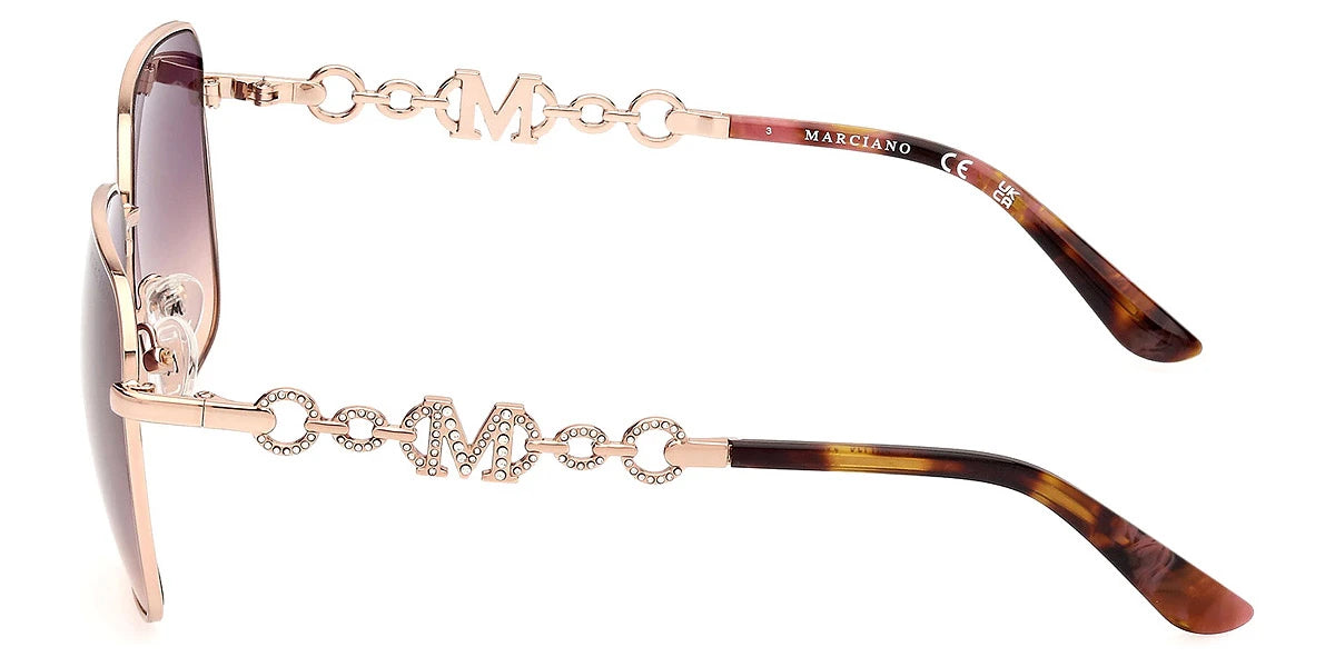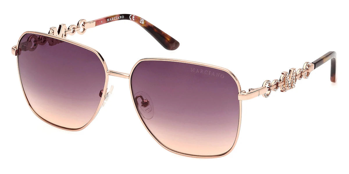 Shiny Rose Gold (28Z) Sunglasses with Gradient or Mirrored Violet lenses (GM00004 28Z 59) by Marciano™. Size: 59-14-145, Shape: Square, Material: Metal.