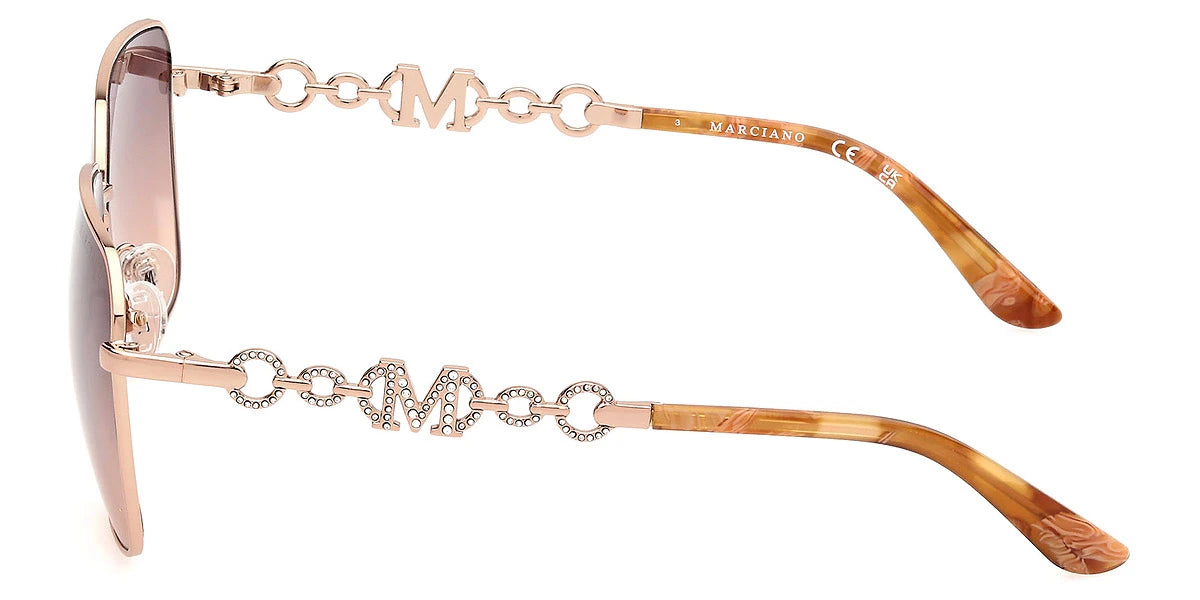 Marciano started to produce collections of sunglasses and optical frames in cooperation with Marcolin Group in 2013. Luxury eyewear for women is designed using the best technologies from the company's experience, and its opulent glasses catch many looks thanks to vivid patterns, stylish prints, and notable decorations, including metal inserts, elements from luminescent plastic, and bold shapes. Every model is introduced in a range of various colors to fit the owner's taste and outfit perfectly. Marciano provides classic glasses as well as beautiful cat-eye frames and other models to fit any face shape and become a lovely accessory for everyday wearing.