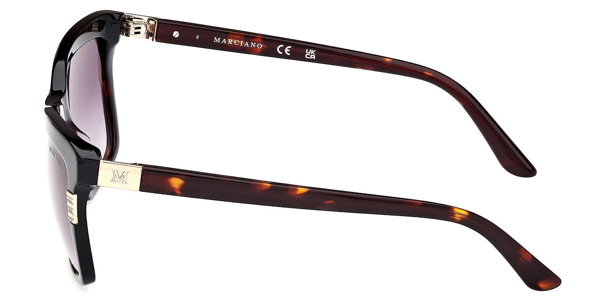 Shiny Black (05B) Sunglasses with Gradient Smoke lenses (GM00010 05B 57) by Marciano™. Size: 57-16-140, Shape: Rectangle, Material: Plastic.