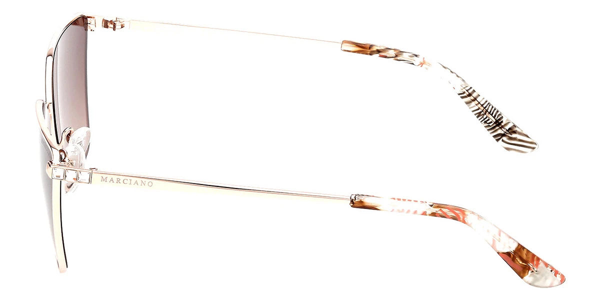 Shiny Rose Gold (28F) Sunglasses with Gradient Brown lenses (GM00023 28F 60) by Marciano™. Size: 60-14-140, Shape: Cat-Eye, Material: Metal.