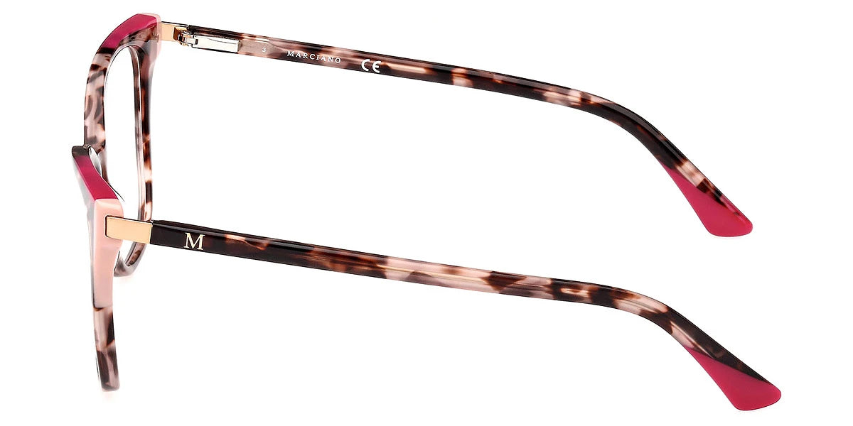 Marciano started to produce collections of sunglasses and optical frames in cooperation with Marcolin Group in 2013. Luxury eyewear for women is designed using the best technologies from the company's experience, and its opulent glasses catch many looks thanks to vivid patterns, stylish prints, and notable decorations, including metal inserts, elements from luminescent plastic, and bold shapes. Every model is introduced in a range of various colors to fit the owner's taste and outfit perfectly. Marciano provides classic glasses as well as beautiful cat-eye frames and other models to fit any face shape and become a lovely accessory for everyday wearing.