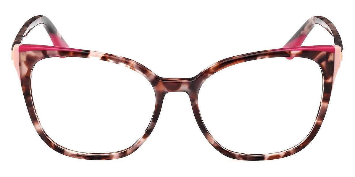 Havana/Other (056) Eyeglasses (GM0390 056 54) by Marciano™. Size: 54-16-140, Shape: Cat-Eye, Material: Plastic.