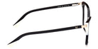 To determine the right size of the frame which ideally fits you, look at the pair of glasses you currently own. The numbers that are typically noted on the inside of the temple are the frame's measurements: lens width, bridge width, and temple length.