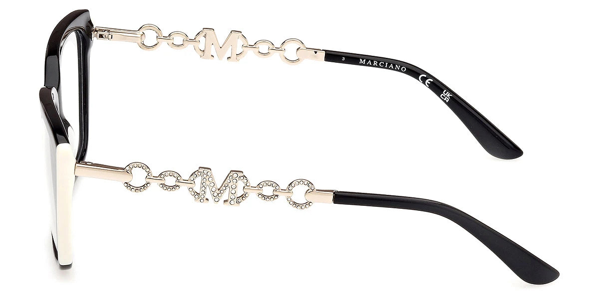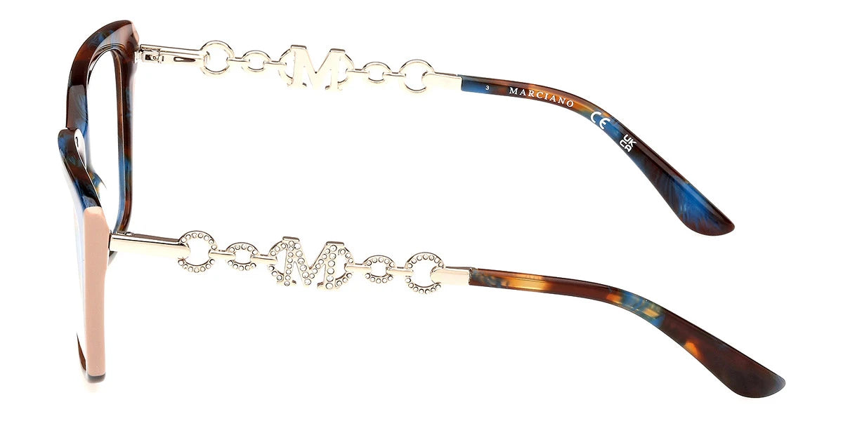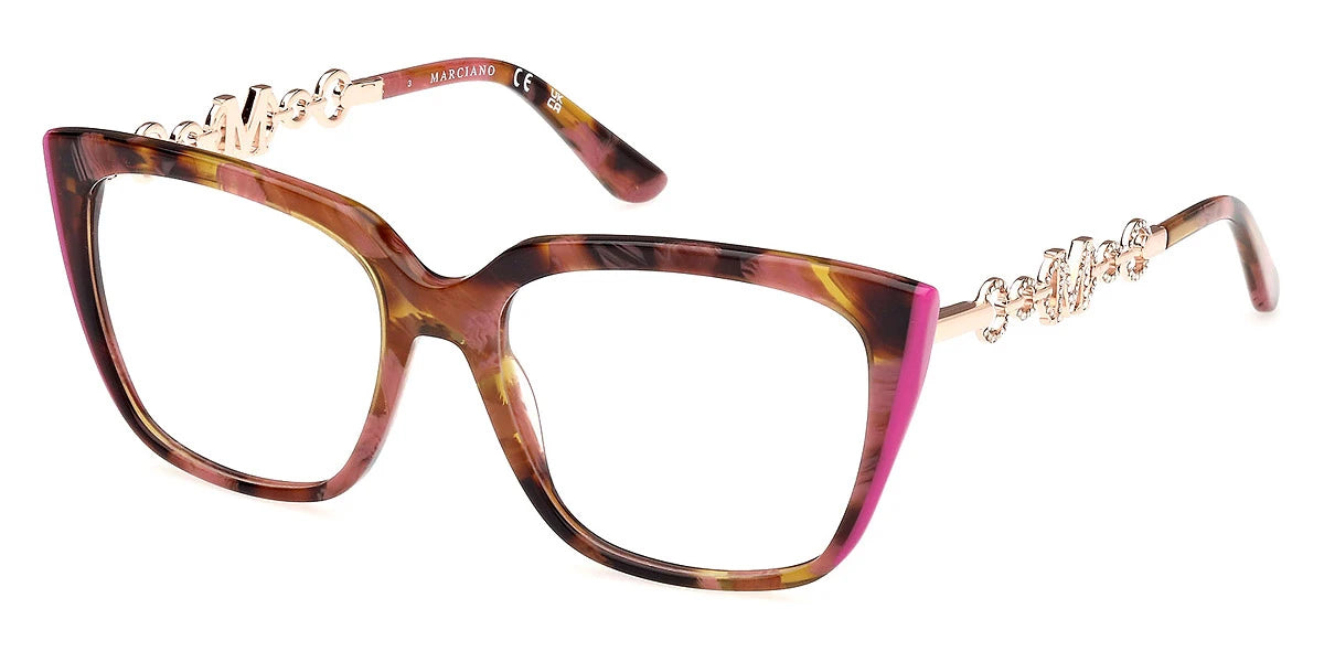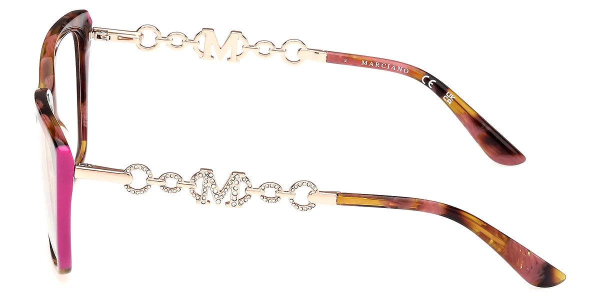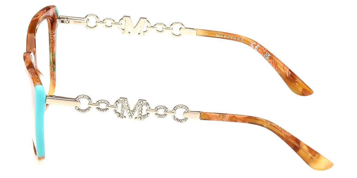 Marciano started to produce collections of sunglasses and optical frames in cooperation with Marcolin Group in 2013. Luxury eyewear for women is designed using the best technologies from the company's experience, and its opulent glasses catch many looks thanks to vivid patterns, stylish prints, and notable decorations, including metal inserts, elements from luminescent plastic, and bold shapes. Every model is introduced in a range of various colors to fit the owner's taste and outfit perfectly. Marciano provides classic glasses as well as beautiful cat-eye frames and other models to fit any face shape and become a lovely accessory for everyday wearing.