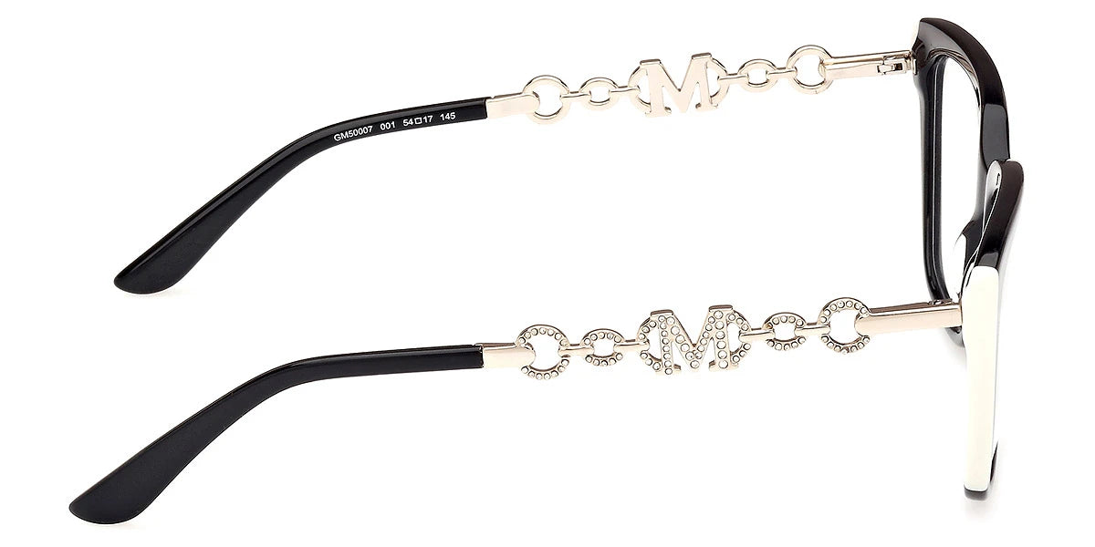 Shiny Black (001) Eyeglasses (GM50007 001 54) by Marciano™. Size: 54-17-145, Shape: Square, Material: Plastic.