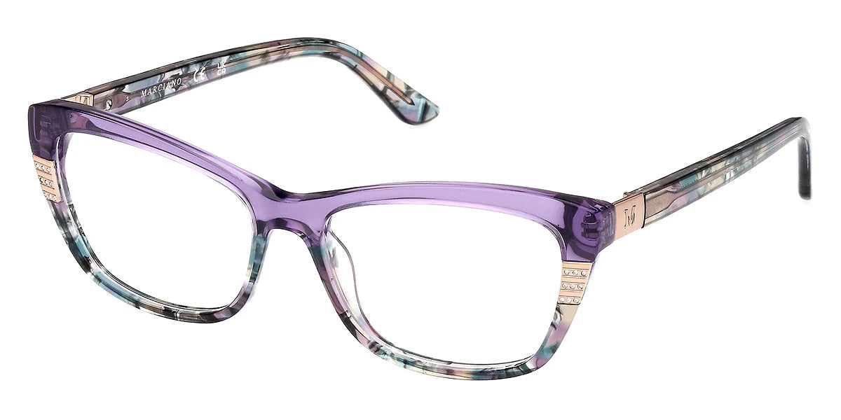 Marciano started to produce collections of sunglasses and optical frames in cooperation with Marcolin Group in 2013. Luxury eyewear for women is designed using the best technologies from the company's experience, and its opulent glasses catch many looks thanks to vivid patterns, stylish prints, and notable decorations, including metal inserts, elements from luminescent plastic, and bold shapes. Every model is introduced in a range of various colors to fit the owner's taste and outfit perfectly. Marciano provides classic glasses as well as beautiful cat-eye frames and other models to fit any face shape and become a lovely accessory for everyday wearing.