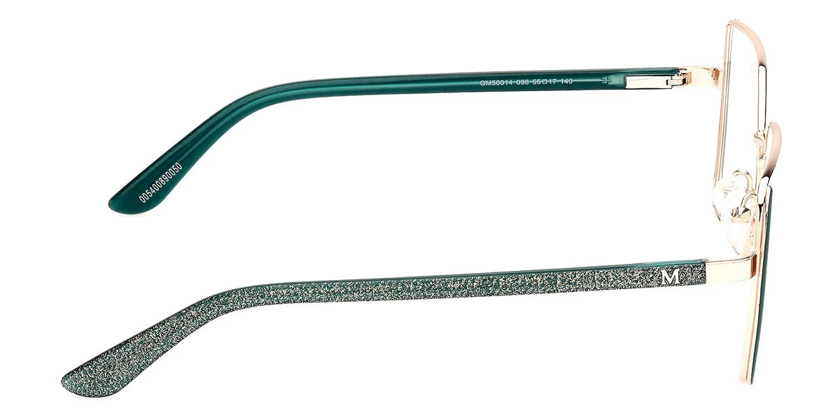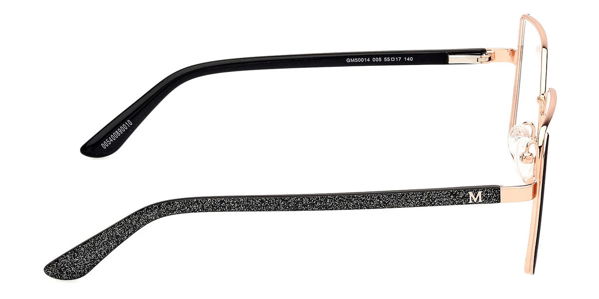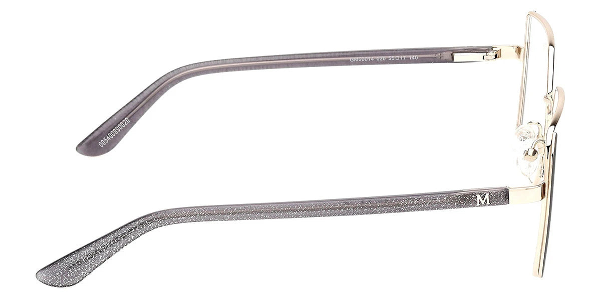 Matte Gray/Shiny Pale Gold (020) Eyeglasses (GM50014 020 55) by Marciano™. Size: 55-17-140, Shape: Square, Material: Metal.