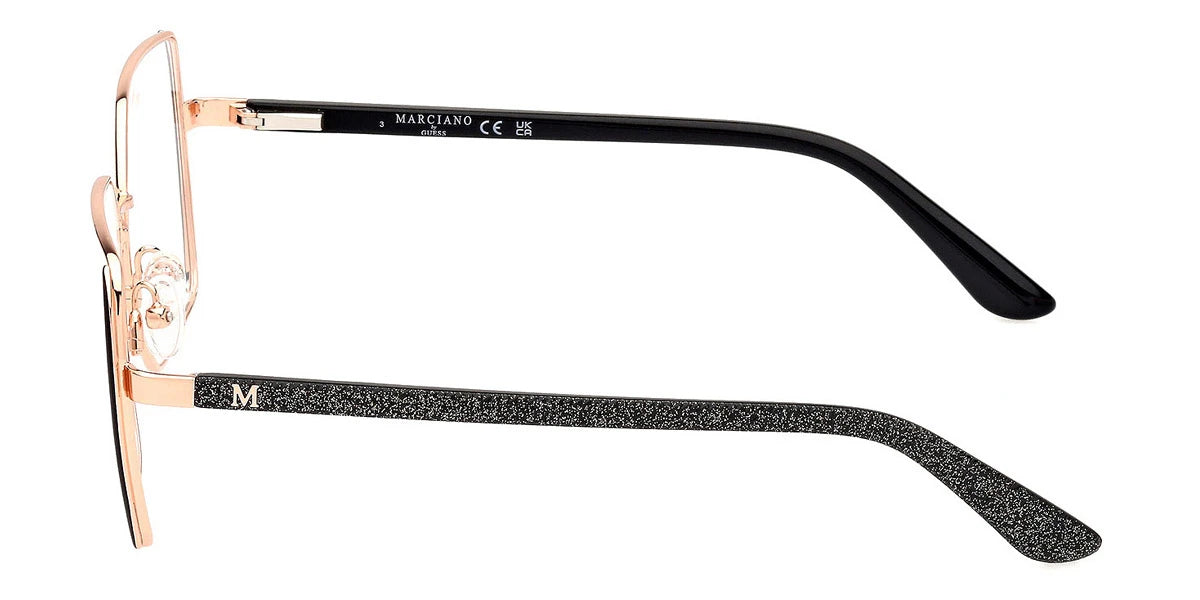 GM50014 Eyeglasses by Marciano™. The square shape design feature a full rim metal frame. This model is available in three different color combinations and sizes. Marciano is the first extended exclusive line of GUESS brand established in 2004 that offers women clothes, including skirts, jeans, tops, and dresses, as well as fashionable and luxury accessories like earrings, bracelets, necklaces, and also stunning collections of eyewear manufactured in a partnership with a famous Italian group Marcolin. The company has several retail stores worldwide and also distributes its products at some GUESS retail locations. Marciano follows the traditions of its founder and creates opulent products filled with pure glamour and sexuality to suit confident women who appreciate effective and sophisticated looks and top-rated materials to stand out from the crowd and show their personality and impeccable taste.