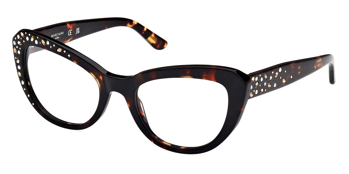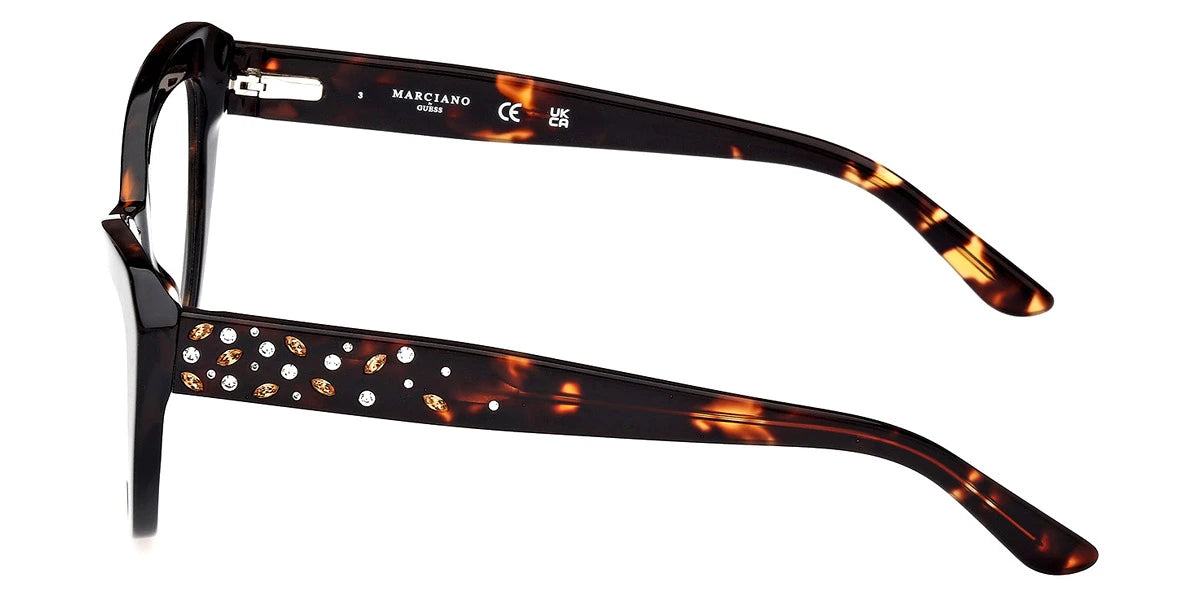 Shiny Black (001) Eyeglasses (GM50016 001 53) by Marciano™. Size: 53-20-140, Shape: Cat-Eye, Material: Plastic.