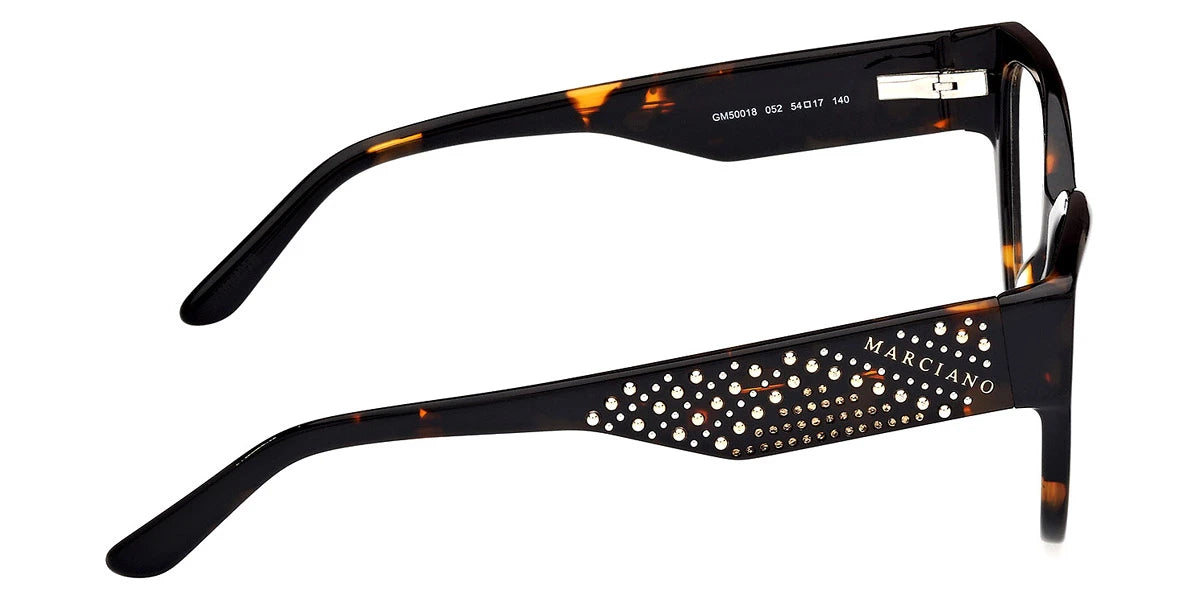 Since 2013, Marciano has become a part of Marcolin's portfolio which offers captivating collections of eyewear for women. Each pair of sunglasses and eyeglasses impress by its originality and breathtaking embellishments including refined details, metal elements, shiny pieces, and exotic animal prints. Created in simple and clean lines, a wide selection of frames offers geometric shapes, cat-eye sexy silhouettes, as well as more classic forms. All the glasses have interesting metal inserts and other decorations meticulously crafted by the best masters, which symbolize the famous Parisian Eiffel Tower. In Marciano eyewear, every woman feels special and intriguing thanks to the unique design and fashionable style that add chic allure and create an extraordinary everyday look.
