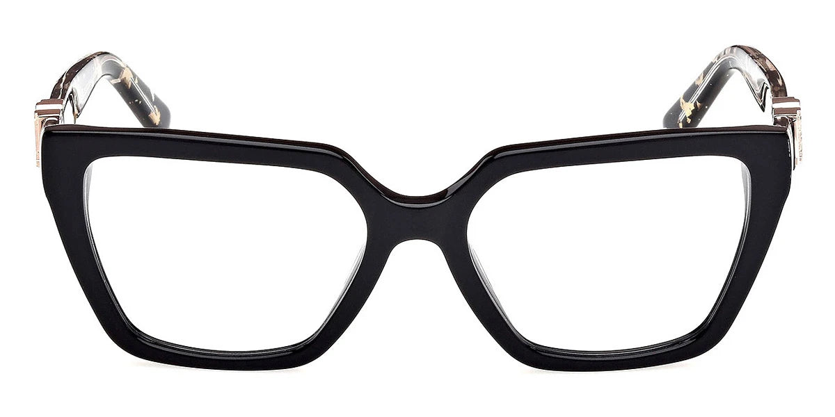 Shiny Black (001) Eyeglasses (GM50028 001 54) by Marciano™. Size: 54-17-140, Shape: Square, Material: Plastic.
