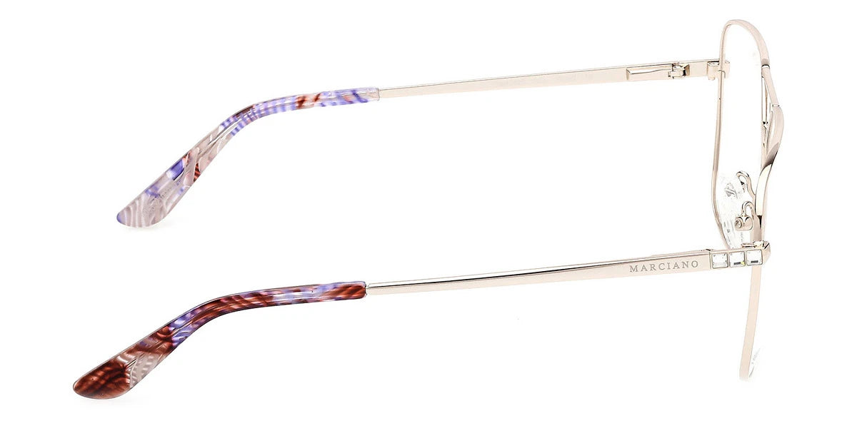 Marciano started to produce collections of sunglasses and optical frames in cooperation with Marcolin Group in 2013. Luxury eyewear for women is designed using the best technologies from the company's experience, and its opulent glasses catch many looks thanks to vivid patterns, stylish prints, and notable decorations, including metal inserts, elements from luminescent plastic, and bold shapes. Every model is introduced in a range of various colors to fit the owner's taste and outfit perfectly. Marciano provides classic glasses as well as beautiful cat-eye frames and other models to fit any face shape and become a lovely accessory for everyday wearing.