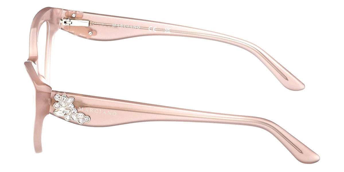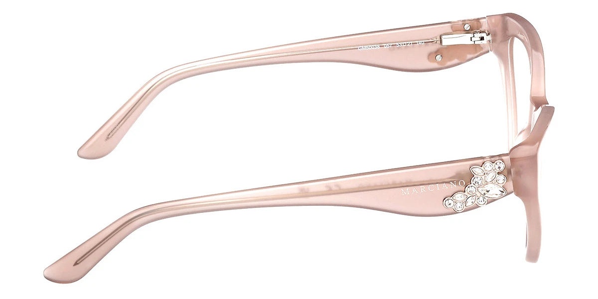 Since 2013, Marciano has become a part of Marcolin's portfolio which offers captivating collections of eyewear for women. Each pair of sunglasses and eyeglasses impress by its originality and breathtaking embellishments including refined details, metal elements, shiny pieces, and exotic animal prints. Created in simple and clean lines, a wide selection of frames offers geometric shapes, cat-eye sexy silhouettes, as well as more classic forms. All the glasses have interesting metal inserts and other decorations meticulously crafted by the best masters, which symbolize the famous Parisian Eiffel Tower. In Marciano eyewear, every woman feels special and intriguing thanks to the unique design and fashionable style that add chic allure and create an extraordinary everyday look.