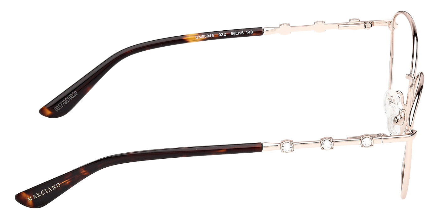 Shiny Rose Gold (028) Eyeglasses (GM50045 028 56) by Marciano. Size: 56-15-140, Shape: Cat-Eye, Material: Metal.