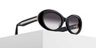 Black (BLK) Sunglasses with Gray Gradient lenses (M1034 BLK 53) by Matsuda™. Size: 53-20-143, Shape: Oval, Material: Acetate.