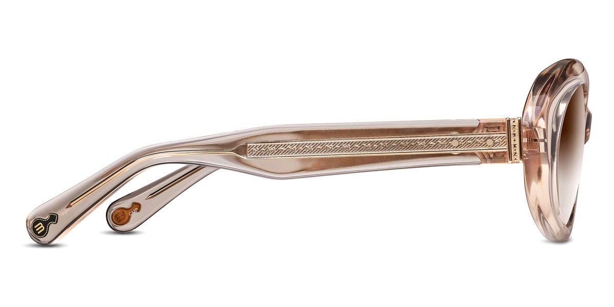M1034 Sunglasses by Matsuda™. The oval shape design feature a full rim acetate frame. This model is available in one color combination. Matsuda has carved a niche for itself in the world of eyewear. Known for its impeccable craftsmanship and innovative designs, the brand has gained a reputation for producing eyewear that effortlessly blends classic elegance with modern aesthetics. With a commitment to excellence in every detail, the trademark has become synonymous with quality, style, and sophistication. At the heart of Matsuda's design philosophy lies a dedication to timelessness. The brand believes in creating eyewear pieces that transcend fleeting fashion trends, focusing instead on crafting enduring styles that stand the test of time. Their designs are characterized by a harmonious fusion of traditional Japanese craftsmanship and contemporary sensibilities, resulting in eyewear that is both classic and innovative. Matsuda pays meticulous attention to every aspect of their designs, from the choice of materials to the precision of craftsmanship. Their frames often feature subtle and intricate details, such as hand-engraved motifs and delicate filigree work, which showcase the brand's commitment to artistry.