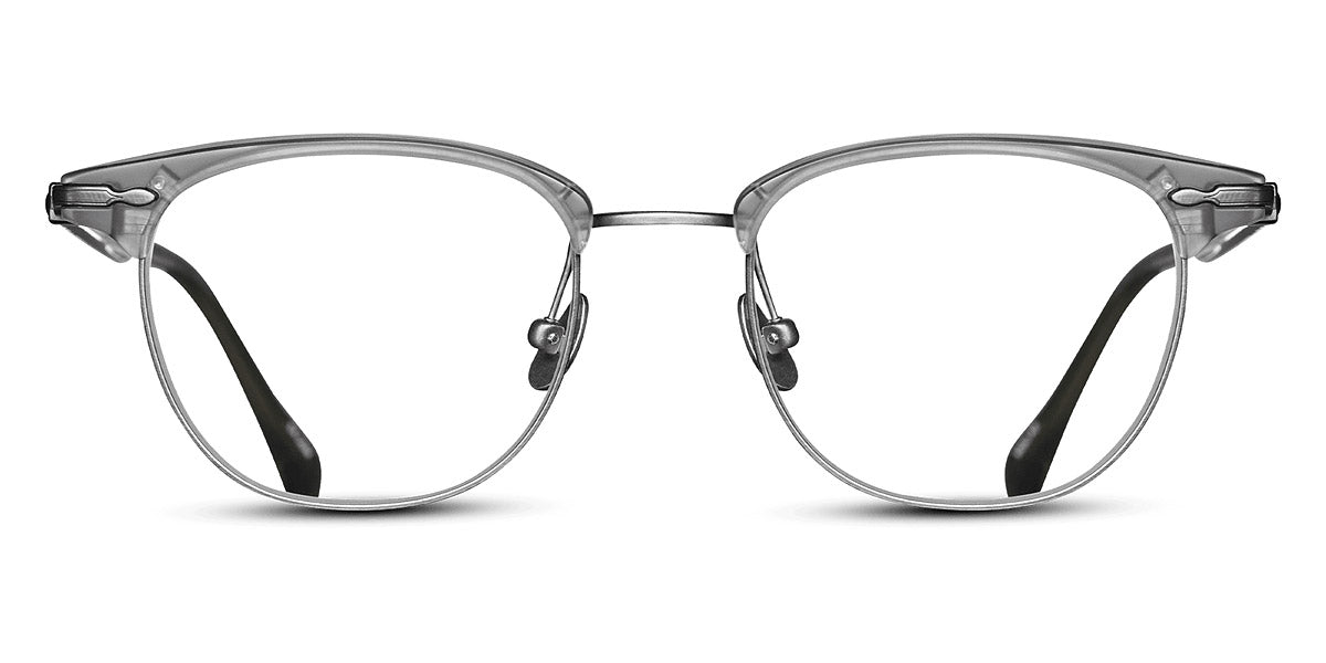 Matte Gray Crystal/Antique Silver (MGC-AS) Eyeglasses (M2048 MGC-AS 48) by Matsuda™. Size: 48-19-145, Shape: Square, Material: Acetate and Metal.