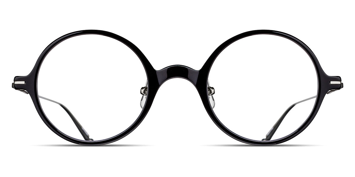 Black/Palladium White (BLK-PW) Eyeglasses (M2054 BLK-PW 46) by Matsuda™. Size: 46-24-145, Shape: Round, Material: Acetate and Metal.
