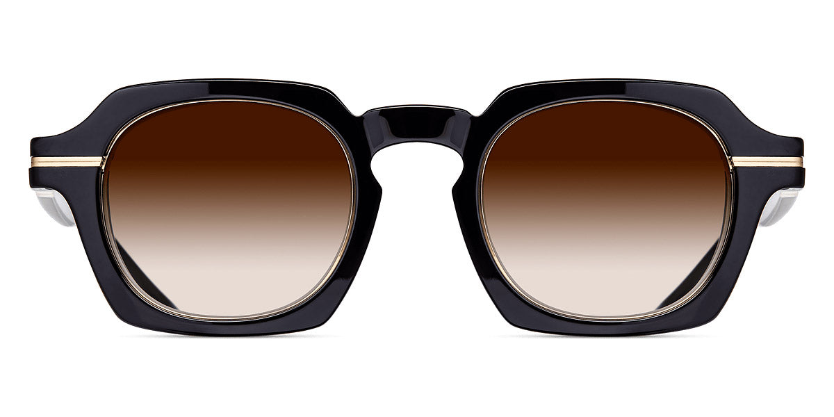 Dark Tortoise/Antique Gold (DTO-AG) Sunglasses with Brown Gradient lenses (M2055 DTO-AG 48) by Matsuda™. Size: 48-23-142, Shape: Square, Material: Acetate and Metal.