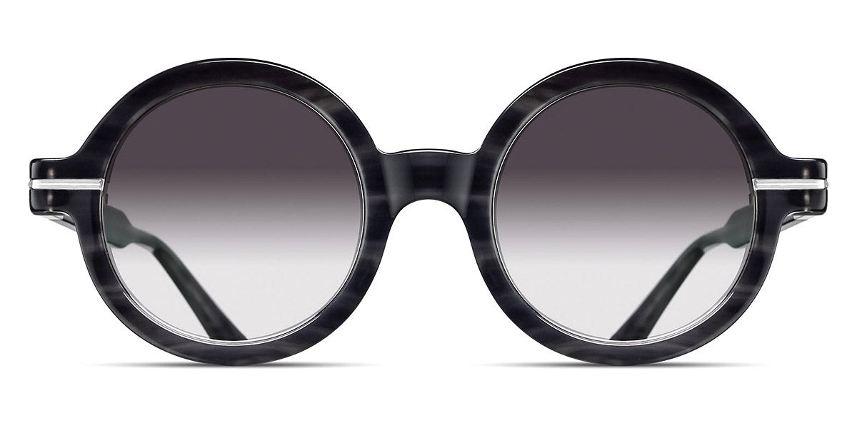 Black Stripe/Brushed Silver (BKS-BS) Sunglasses with Gray Gradient lenses (M2059 BKS-BS 48) by Matsuda™. Size: 48-23-140, Shape: Round, Material: Acetate and Metal.