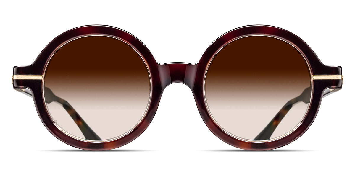 M2059 Sunglasses by Matsuda™. The round shape design feature a full rim acetate and metal frame. This model is available in four different color combinations and sizes. Matsuda has carved a niche for itself in the world of eyewear. Known for its impeccable craftsmanship and innovative designs, the brand has gained a reputation for producing eyewear that effortlessly blends classic elegance with modern aesthetics. With a commitment to excellence in every detail, the trademark has become synonymous with quality, style, and sophistication. At the heart of Matsuda's design philosophy lies a dedication to timelessness. The brand believes in creating eyewear pieces that transcend fleeting fashion trends, focusing instead on crafting enduring styles that stand the test of time. Their designs are characterized by a harmonious fusion of traditional Japanese craftsmanship and contemporary sensibilities, resulting in eyewear that is both classic and innovative. Matsuda pays meticulous attention to every aspect of their designs, from the choice of materials to the precision of craftsmanship. Their frames often feature subtle and intricate details, such as hand-engraved motifs and delicate filigree work, which showcase the brand's commitment to artistry.
