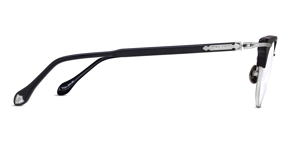 Black/Brushed Silver (BLK-BS) Eyeglasses (M2061 BLK-BS 49) by Matsuda™. Size: 49-19-145, Shape: Cat-Eye, Material: Acetate and Titanium.