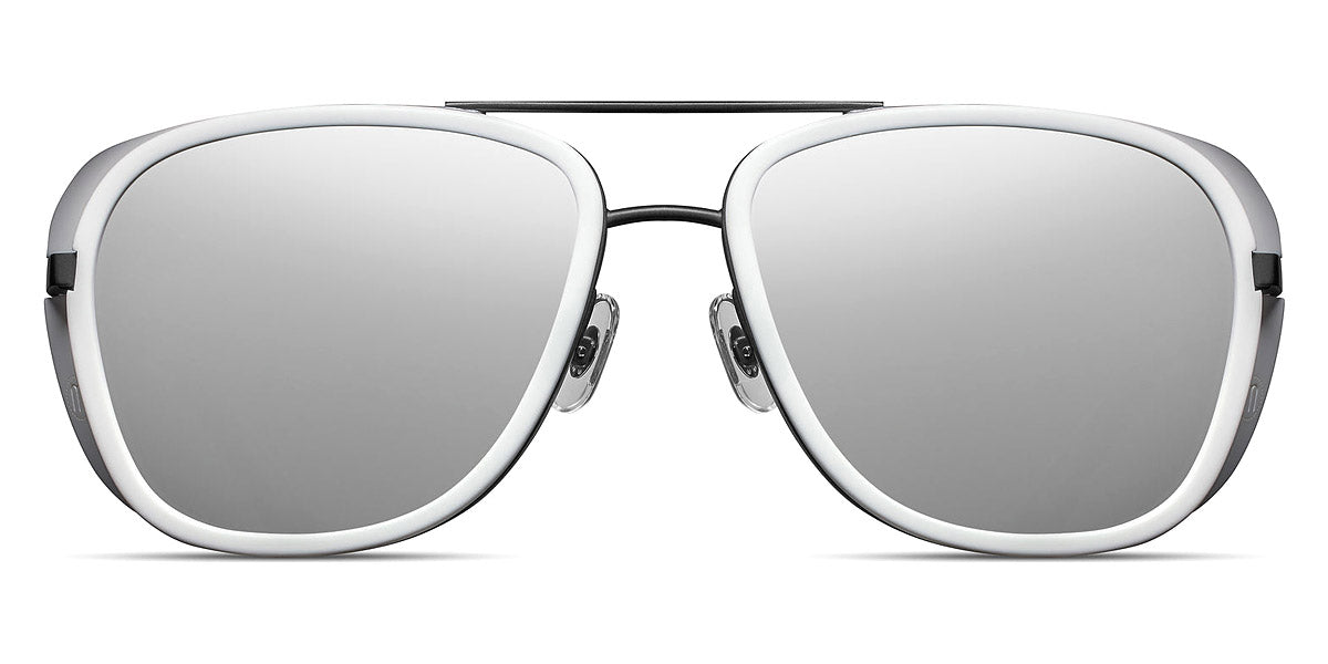 Matte Black/Matte White (MBK-MWT) Sunglasses with Silver Mirrored lenses (M3023 MBK-MWT 57) by Matsuda™. Size: 57-16-145, Shape: Aviator, Material: Acetate and Metal.