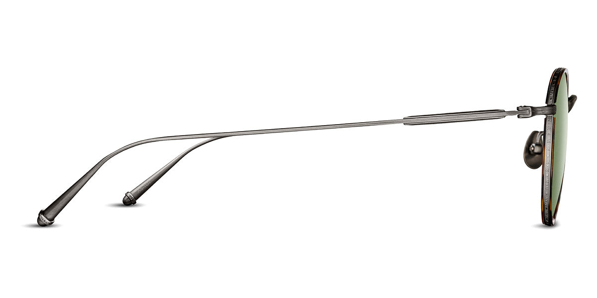 Antique Gold/Bottle Green (AG-BGN) Sunglasses with Brown lenses (M3085-I Sun AG-BGN 47) by Matsuda™. Size: 47-23-145, Shape: Round, Material: Metal.
