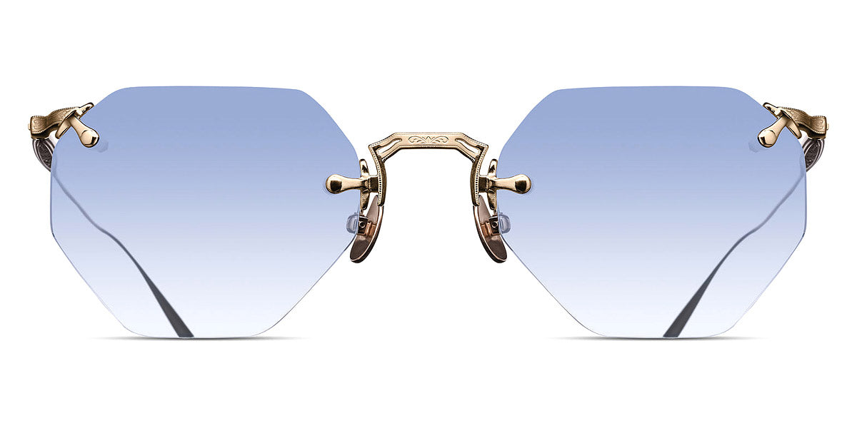 Antique Gold (AG4) Sunglasses with Cobalt Blue lenses (M3104-C Sun AG4 50) by Matsuda™. Size: 50-22-145, Shape: Geometric, Material: Titanium.