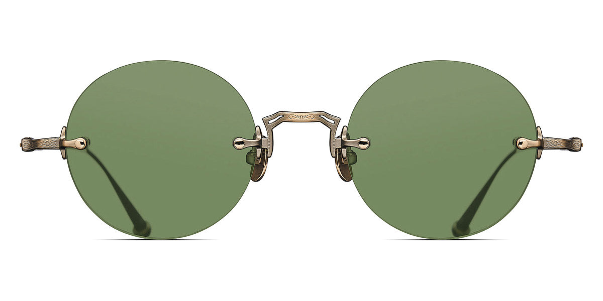 Antique Gold (AG5) Sunglasses with Sage Green lenses (M3105-D Sun AG5 47) by Matsuda™. Size: 47-22-145, Shape: Round, Material: Metal.