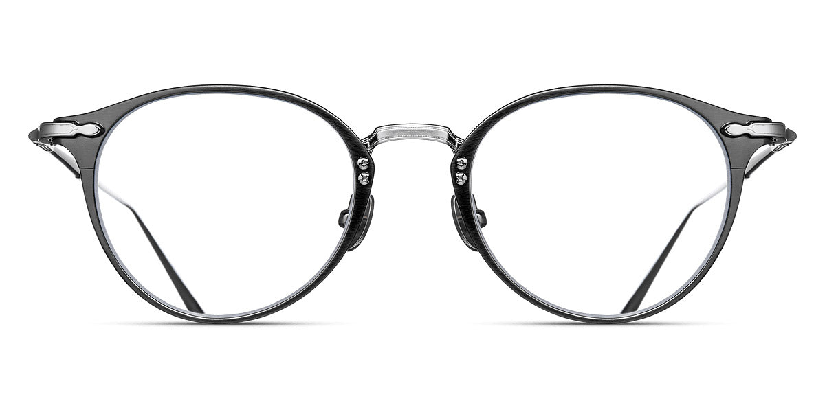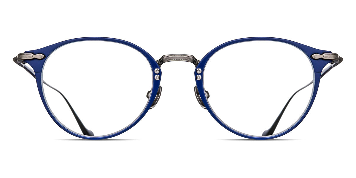 Antique Silver/Matte Navy (AS-MNV) Eyeglasses (M3112 AS-MNV 48) by Matsuda™. Size: 48-19-145, Shape: Round, Material: Acetate and Metal.