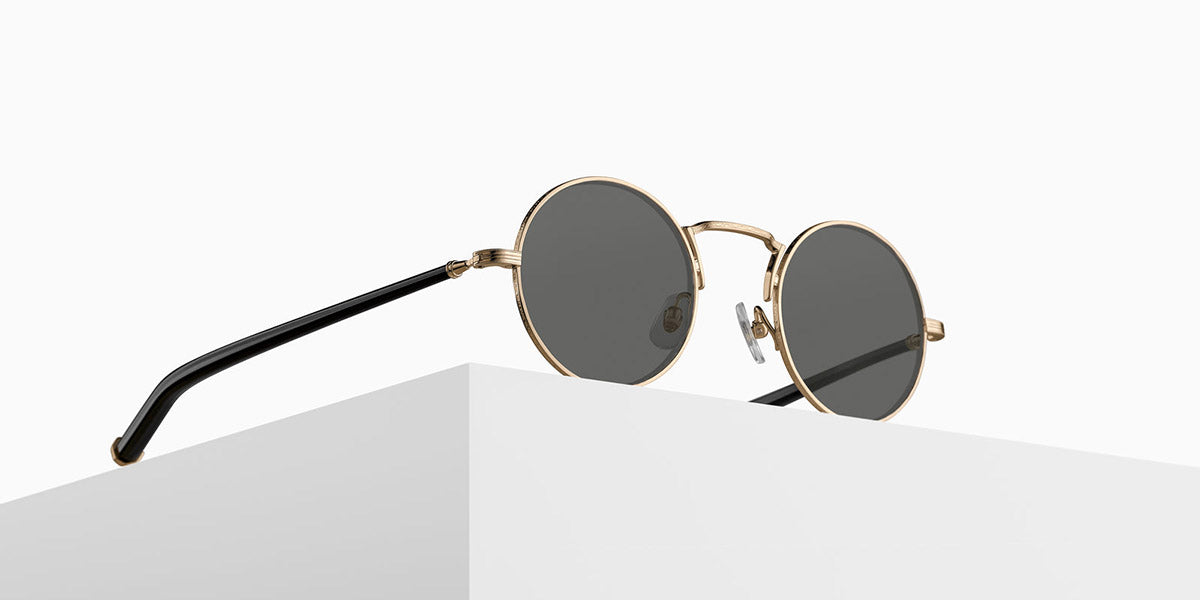 Brushed Gold (BG) Sunglasses with Gray lenses (M3119 Sun BG 46) by Matsuda™. Size: 46-23-145, Shape: Round, Material: Acetate and Metal.
