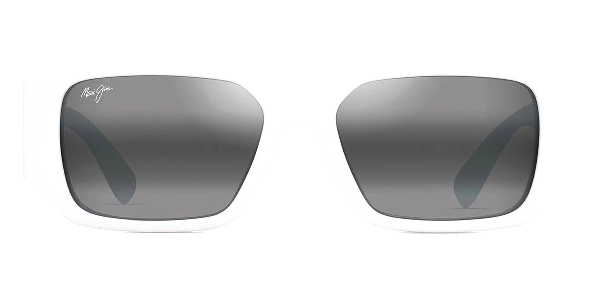 Shiny White (MM639-025) Sunglasses with Neutral Gray lenses (KŪPALE MM639-025 55) by Maui Jim™. Size: 55-17-145, Shape: Rectangle, Material: Nylon.