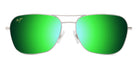 Shiny Silver with Blue and Green (MM675-046) Sunglasses with MAUI Green® lenses (NA'AUAO MM675-046 58) by Maui Jim™. Size: 58-16-145, Shape: Aviator, Material: Monel Metal and Stainless Steel.