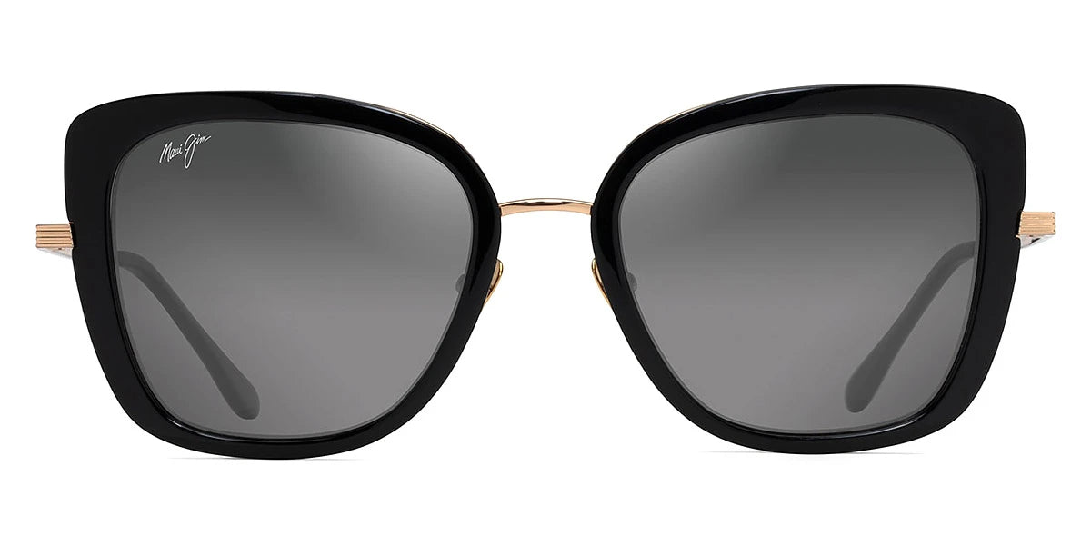 Black with Gold (MM843-012) Sunglasses with Blue Hawaii lenses (VIOLET LAKE MM843-012 54) by Maui Jim™. Size: 54-20-145, Shape: Cat-Eye, Material: Titanium and Acetate.