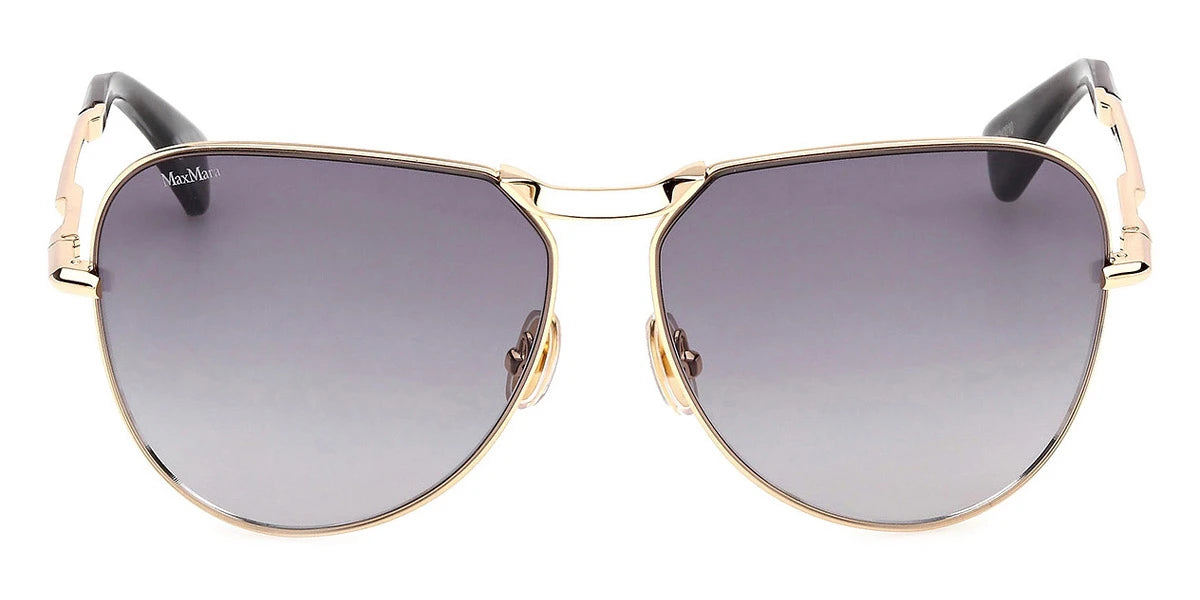 Shiny Deep Gold (30B) Sunglasses with Gradient Smoke lenses (MILLER-2 MM0134 30B 59) by Max Mara™. Size: 59-13-125, Shape: Aviator, Material: Metal.