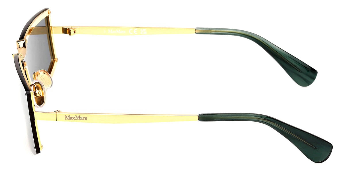 Shiny Deep Gold (30N) Sunglasses with Green lenses (Occhiali MM0118 30N 68) by Max Mara™. Size: 68-3-135, Shape: Rectangle, Material: Metal.