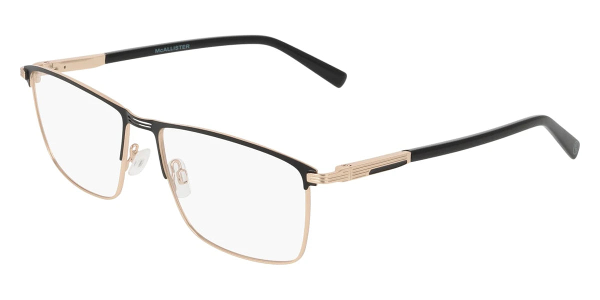 Black (001) Eyeglasses (MC4554 001 60) by McAllister™. Size: 60-18-150, Shape: Rectangle, Material: Metal.