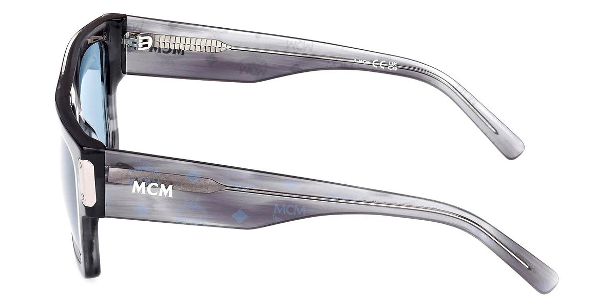 Gray/Texture (20V) Sunglasses with Blue lenses (MW0011 20V 55) by MCM™. Size: 55-16-145, Shape: Rectangle, Material: Plastic.
