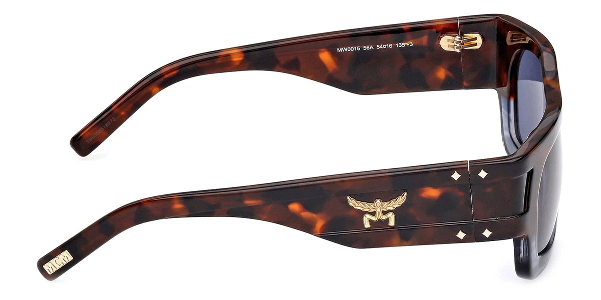 Blue/Havana (05J) Sunglasses with Blue lenses (MW0015 05J 54) by MCM™. Size: 54-18-135, Shape: Rectangle, Material: Plastic.