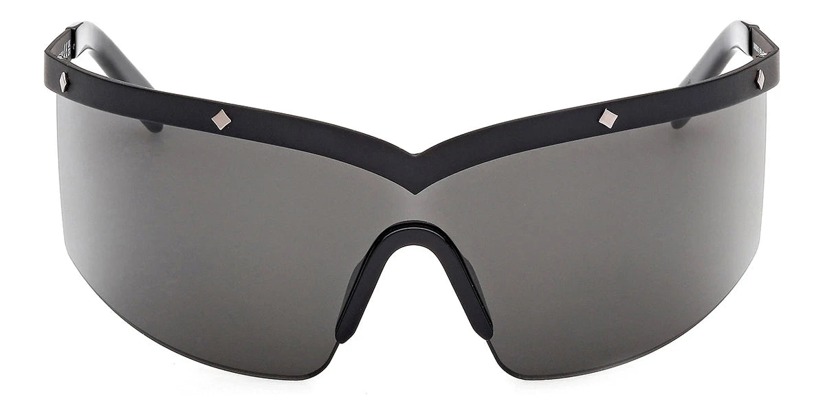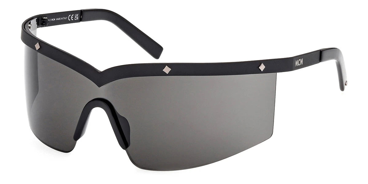Shiny Black/Matte Black (02A) Sunglasses with Smoke lenses (MW0016 02A 136) by MCM™. Size: 136-0-105, Shape: Shield, Material: Metal.