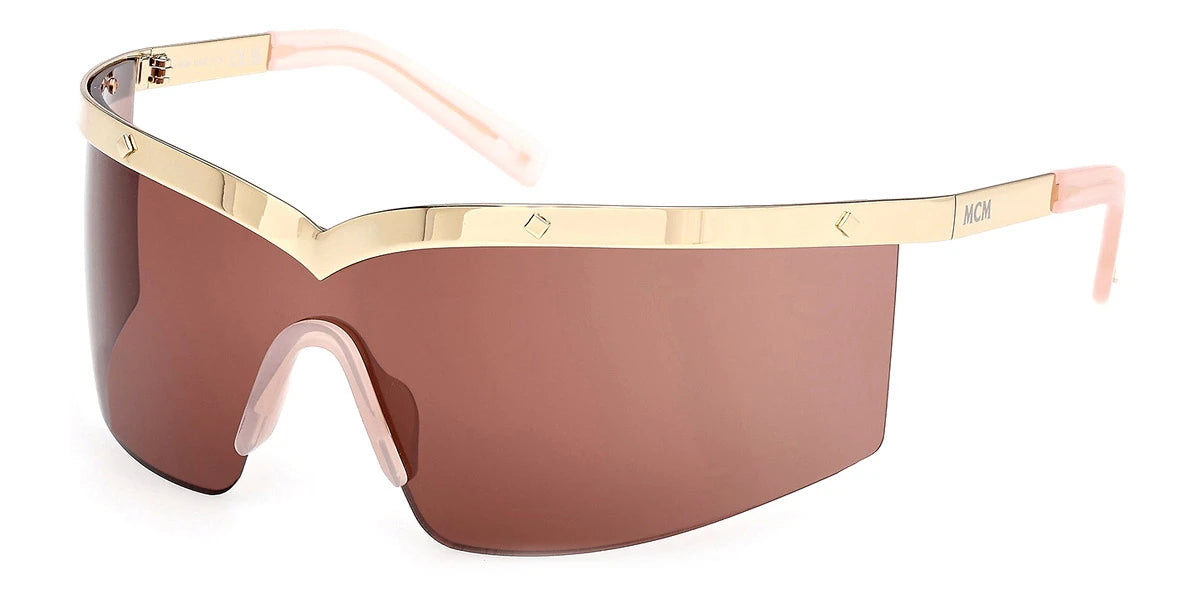 MW0016 Sunglasses by MCM™. The shield shape design feature a semi rimless metal frame. This model is available in two different color combinations and sizes. The collection of MCM sunglasses includes bold, graphic silhouettes beautifully blended with contemporary prints and embellishments. If you are looking for 365 days of sun protection and eye-catching style, MCM sunnies are just the ticket. Each frame features a reliable and sturdy construction to ensure comfortable fit and long-lasting service life. Soak in the rays while wearing a pair of MCM sunglasses along with your favorite sun hat.