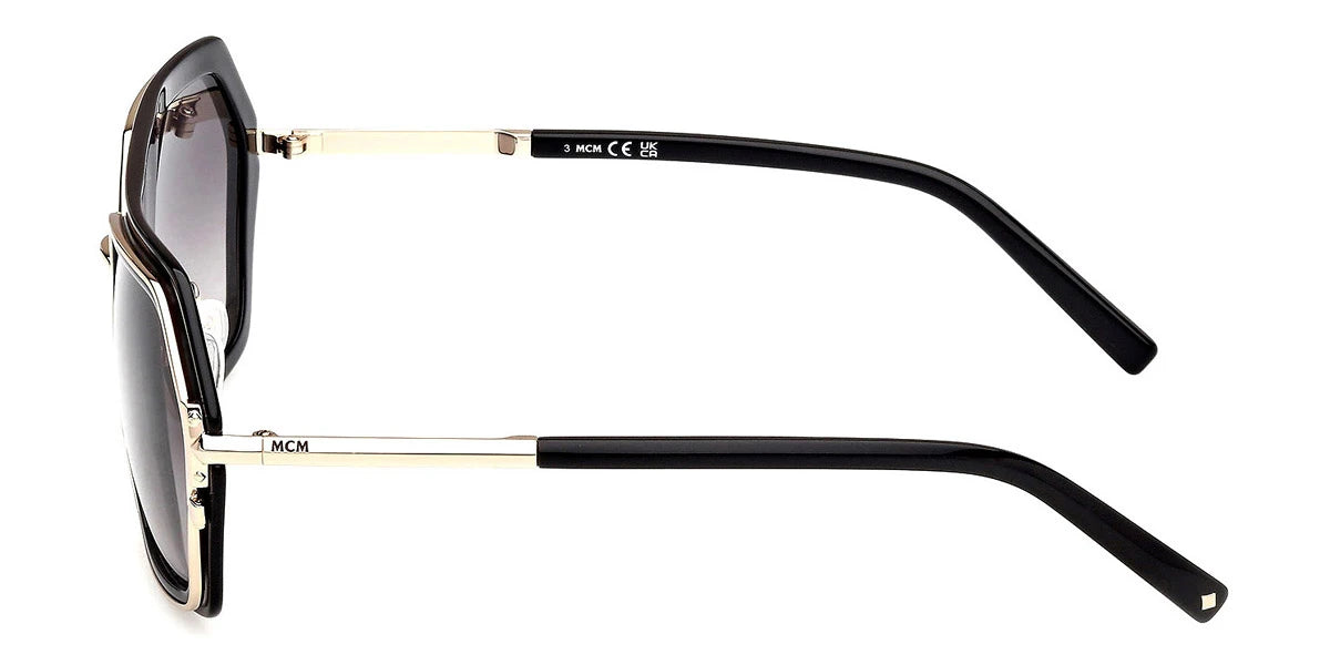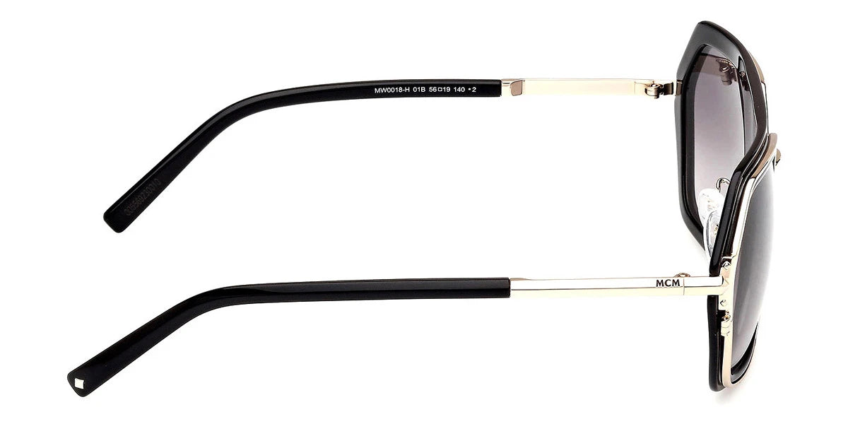 Shiny Black (01B) Sunglasses with Gradient Smoke lenses (MW0018-H 01B 56) by MCM™. Size: 56-19-140, Shape: Geometric, Material: Metal.