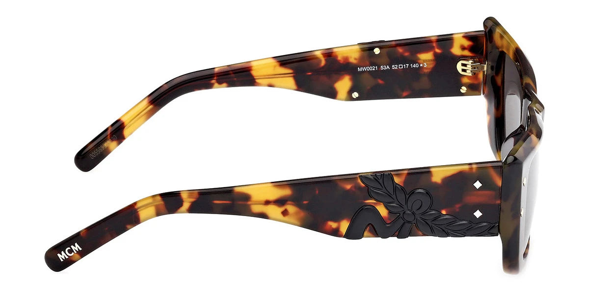 Blonde Havana (53A) Sunglasses with Smoke lenses (MW0021 53A 52) by MCM™. Size: 52-17-140, Shape: Cat-Eye, Material: Plastic.