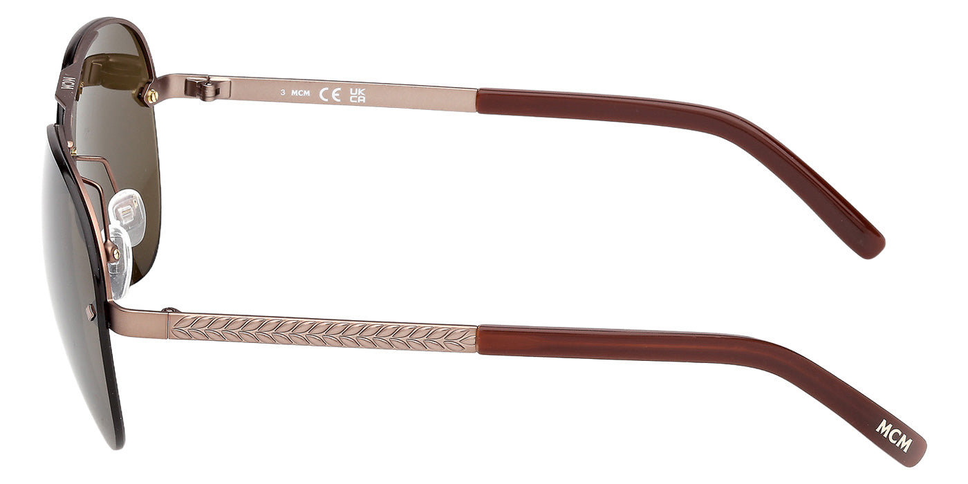 The aviator shape desing feature a semi rimless metal frame. This model is available in four different color combinations and sizes. The collection of MCM sunglasses includes bold, graphic silhouettes beautifully blended with contemporary prints and embellishments. If you are looking for 365 days of sun protection and eye-catching style, MCM sunnies are just the ticket. Each frame features a reliable and sturdy construction to ensure comfortable fit and long-lasting service life. Soak in the rays while wearing a pair of MCM sunglasses along with your favorite sun hat.