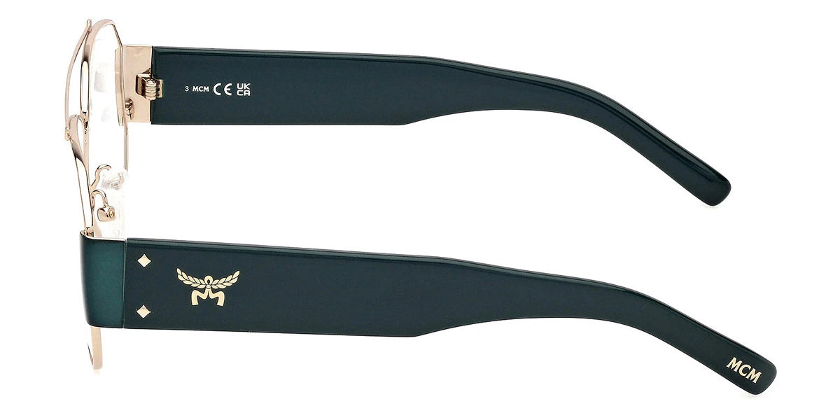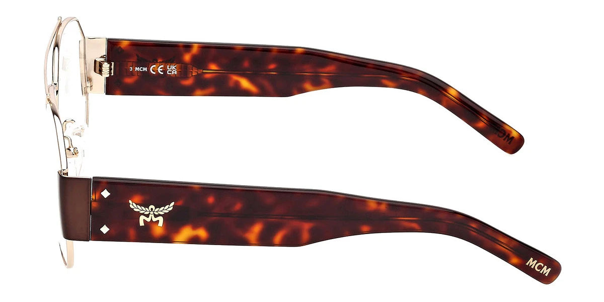 MW5001 Eyeglasses by MCM™. The aviator shape design feature a full rim metal frame. This model is available in three different color combinations and sizes. The worldwide renowned MCM brand presents a new collection of eyeglasses that combines a modern and fresh design with timeless luxury. Appealing to the nomad generation – creative and motivated young people who appreciate both functionality and glamour, MCM frames combine exceptional craftsmanship and contemporary design. The timeless silhouettes are embellishes with captivating prints and temple logo plaques for an incredibly chic finish.