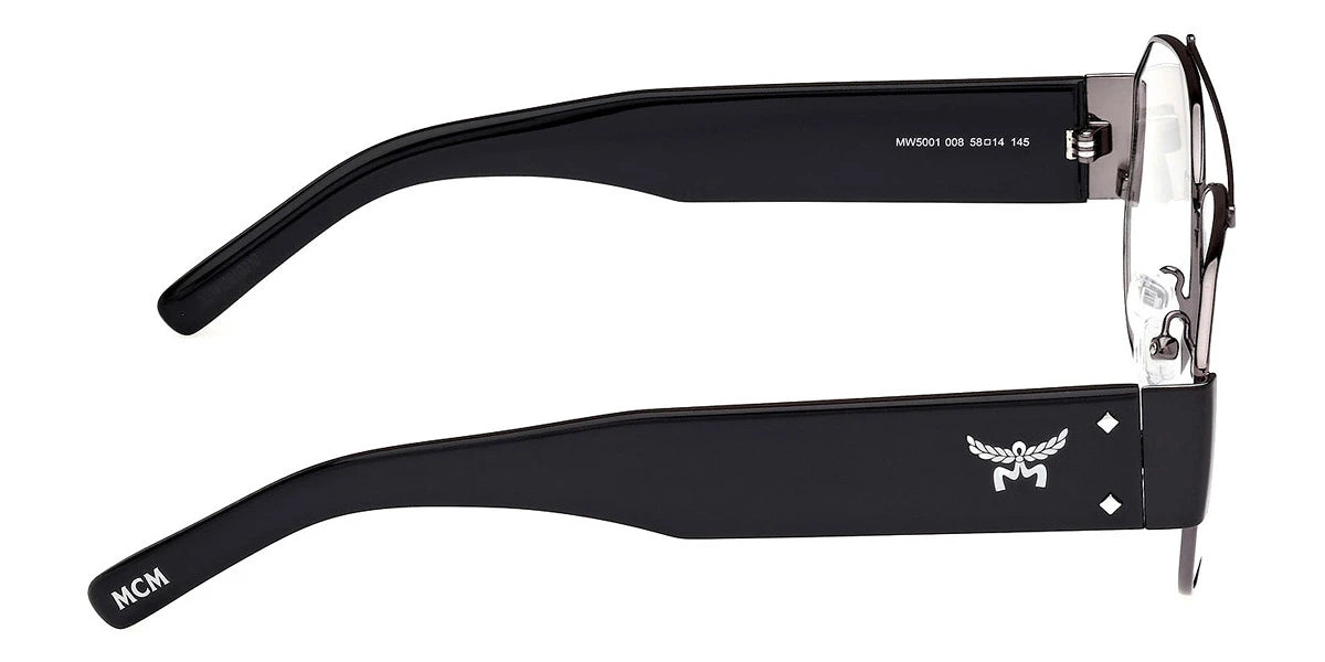 Shiny Gunmetal/Shiny Black (008) Eyeglasses (MW5001 008 58) by MCM™. Size: 58-14-145, Shape: Aviator, Material: Metal.